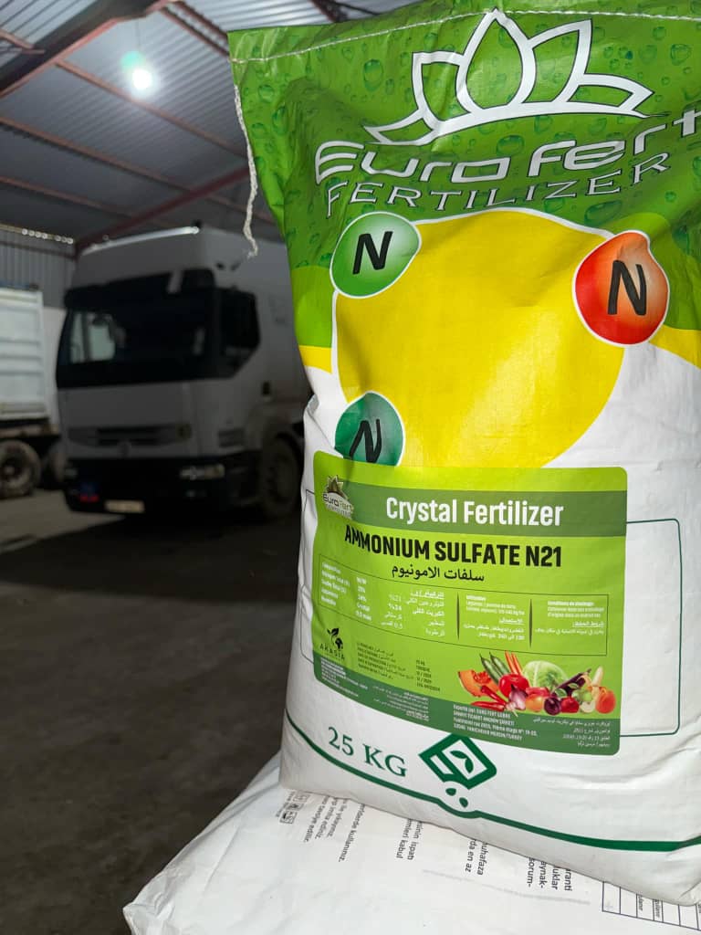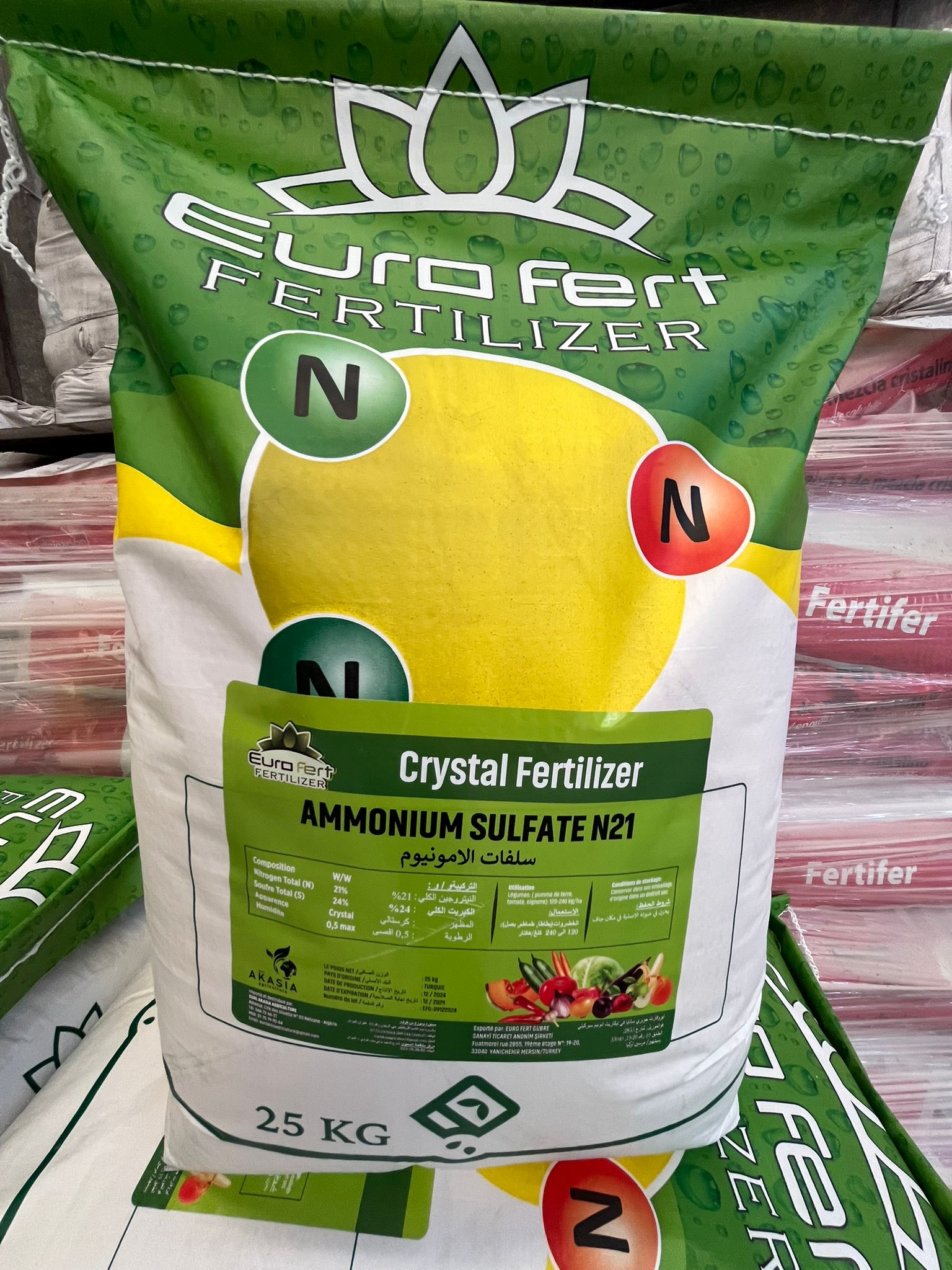 سماد بلوري عالي الجودة يحتوي على 20.5٪ نيتروجين و24٪ كبريت، وهما عنصران أساسيان لنمو النباتات وتكوين البروتينات. متوفر بأوزان 20 كجم، 25 كجم، و50 كجم. يتميز بشكله الحبيبي المضغوط الذي يسهل تطبيقه، ومناسب لمجموعة واسعة من المحاصيل مثل الحبوب، الفواكه، والخضروات. يُخزن في مكان بارد وجاف، بعيدًا عن أشعة الشمس والرطوبة.
